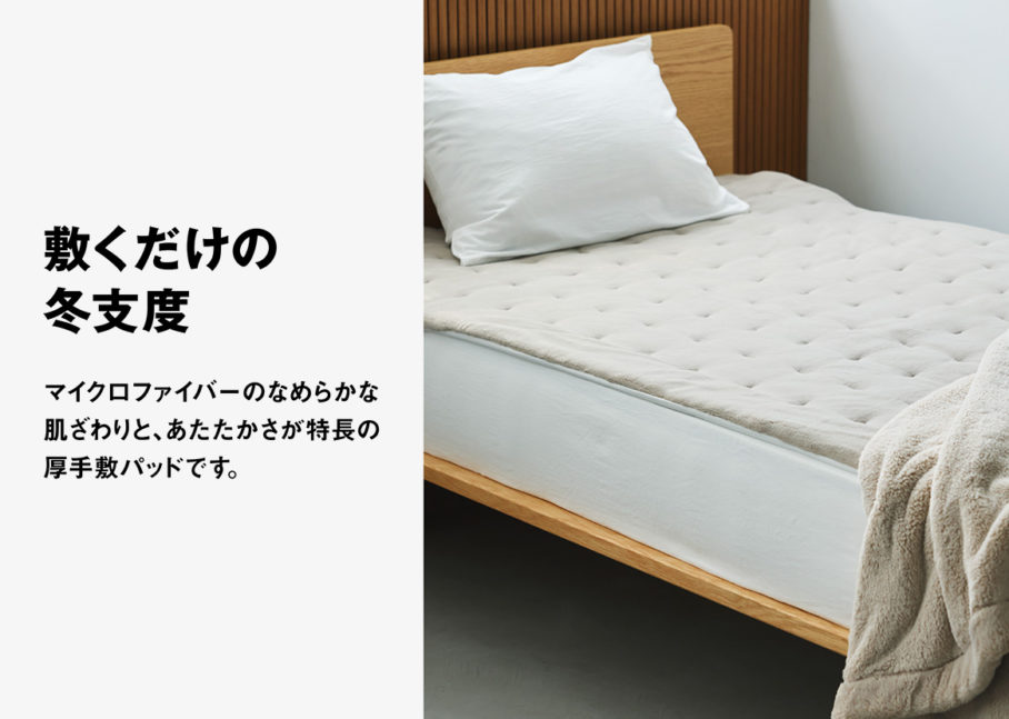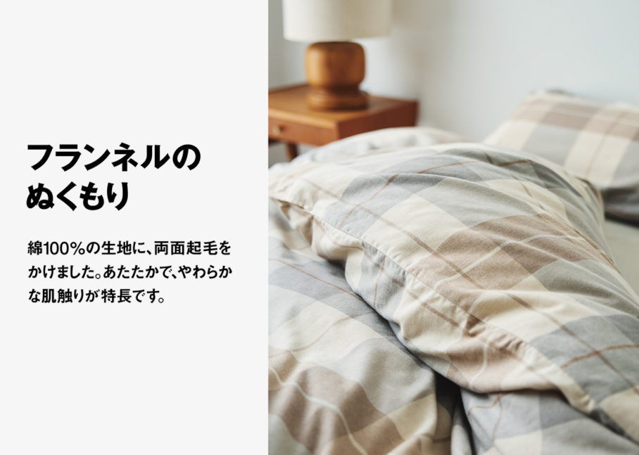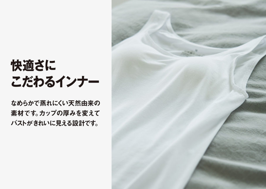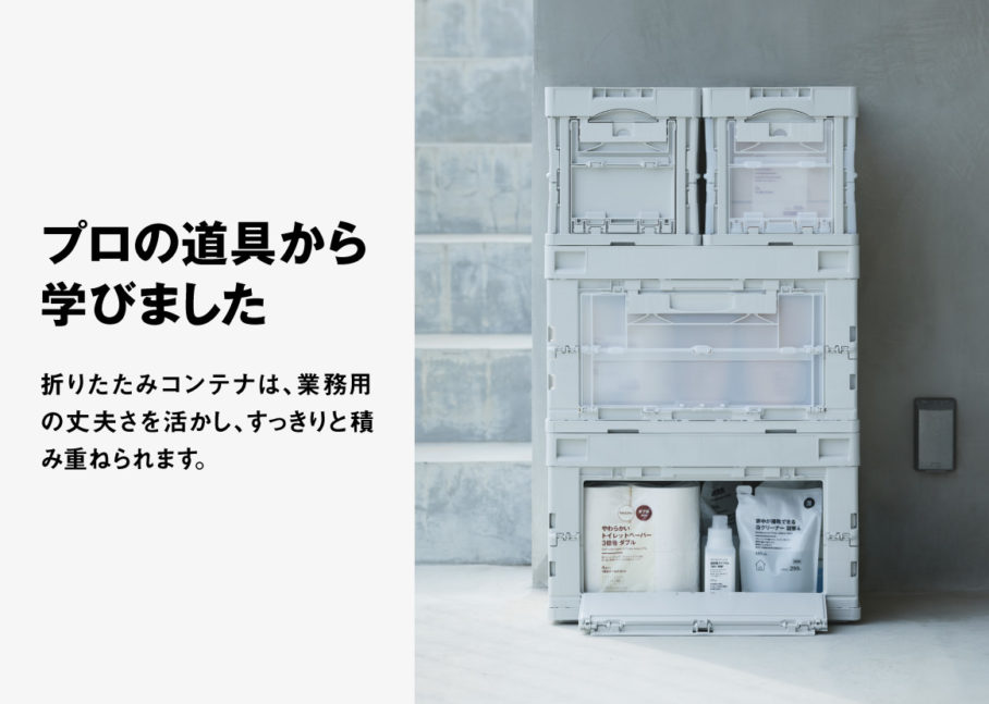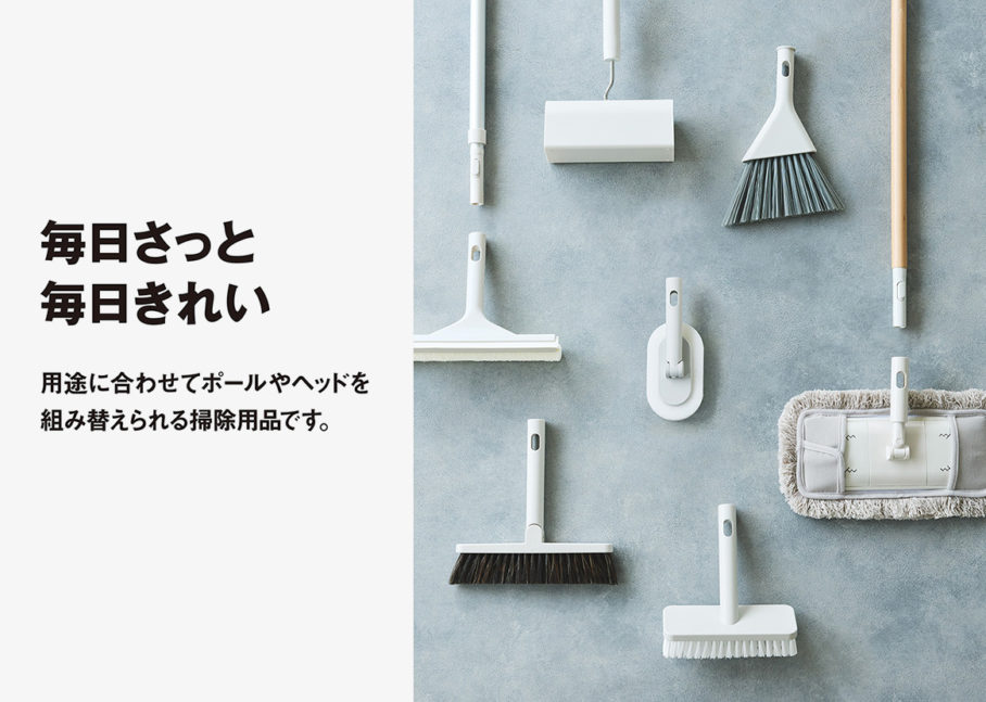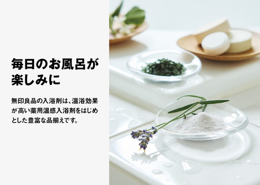 無印良品の店頭ビジュアルのアートディレクションを担当しました。商品数7000以上を扱う無印良品の定番商品をピックアップし、機能を訴求するコピーと合わせ、写真も商品のど真ん中を切り取るように設計しています。無印良品のブランドがもつ「感じの良い暮らし」を商品を背景にイメージできるよう、丁寧に世界観をつくりあげています。